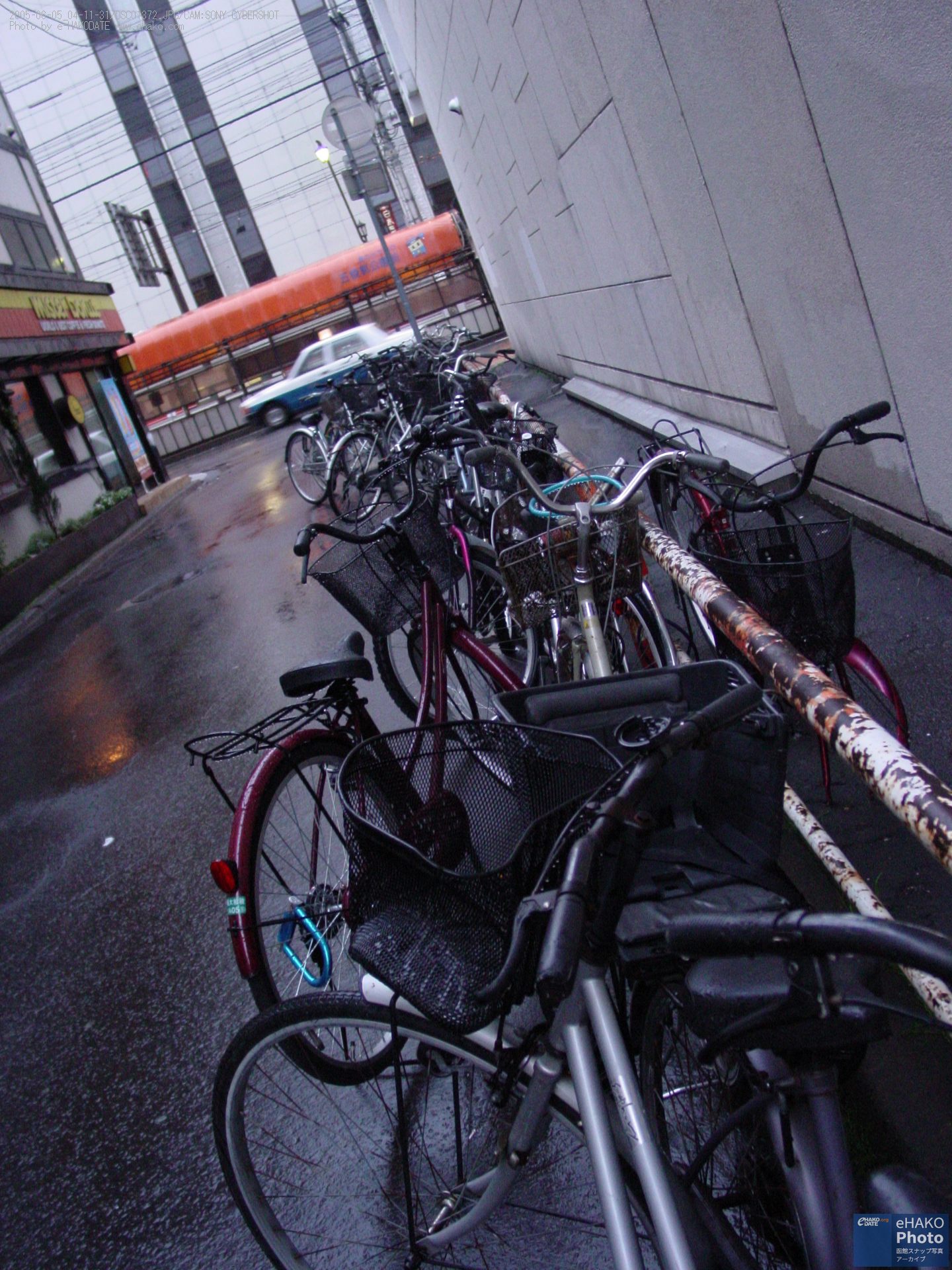 本町の脇道 2005年6月5日夕方撮影(たぶん 本町、旧五稜郭ダイエーとミスタードーナツの間の一方通行路。自転車たくさん。電停利用者達が停めたのか、その後放置されたもののあるかな。たま~に車で抜けようとすると通りにくかったりしたものです。 2015年2月現在、旧五稜郭ダイエービルももう解体されて新ビル建設中です。 FacebookXBlueskyHatenaCopy