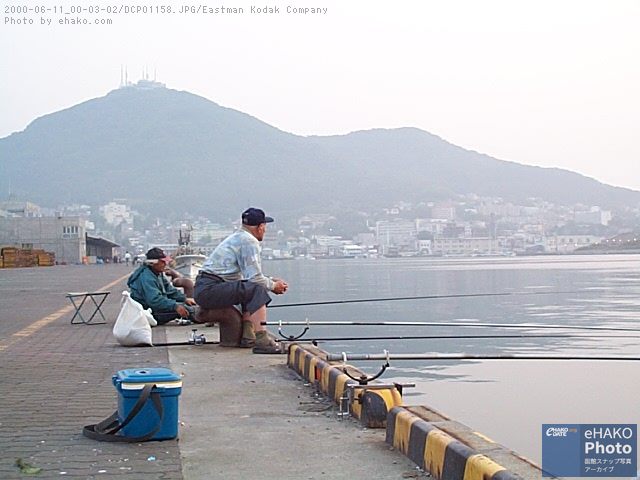 函館湾と函館どつくのゴライアスクレーン 2000年6月11日撮影。 まだ函館どつくのゴライアスクレーンが存在していた頃の函館湾。「撤去になる」という噂がチラホラありながらも、函館のランドマークの1つとして親しまれていました。ガスがかかった夕暮れ風景がなんとも6月の函館っぽい一枚。 函館港で釣りを楽しむ人々。 FacebookXBlueskyHatenaCopy