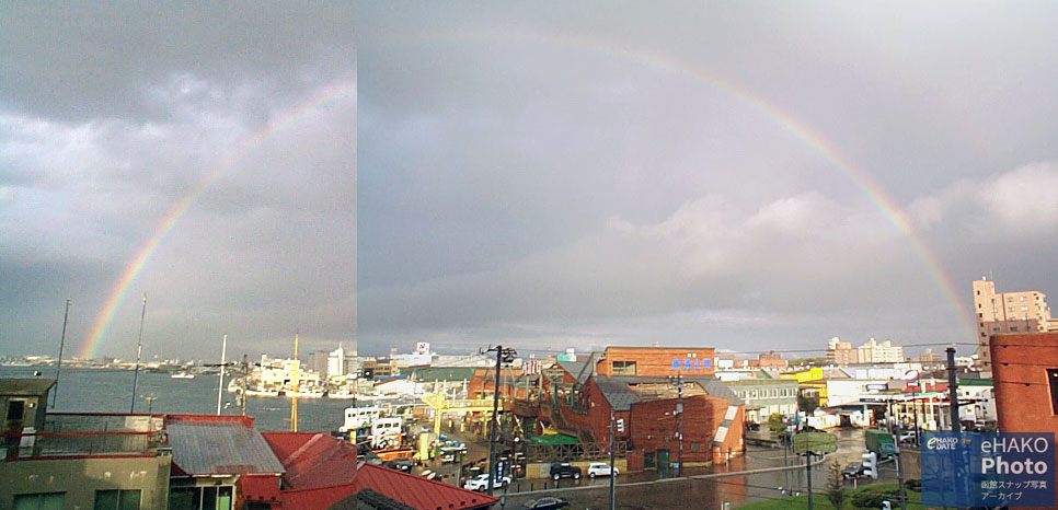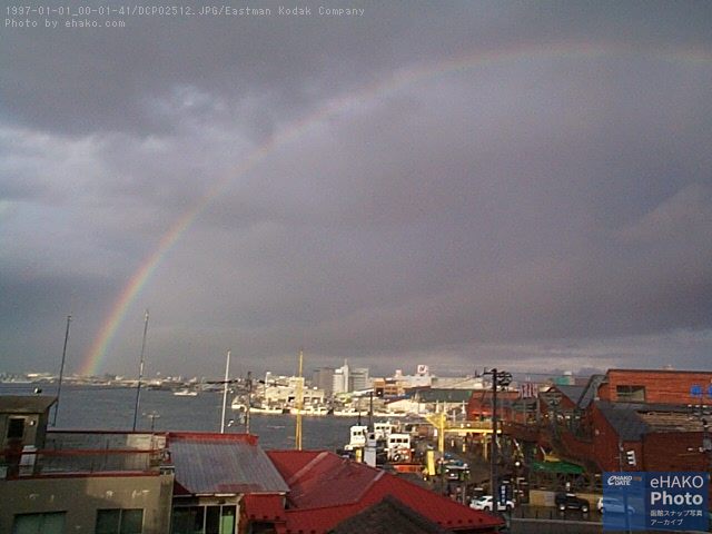 ベイエリアを包む虹の橋 2000年10月3日撮影。 写真のタイムスタンプは1997年1月1日になっていますが、これは間違いですね。 正しくは2000年の撮影です。虹が端から端までぐるりときれいに街に橋をかけていたのを当時のスタッフが撮影したものかと思われます。 冒頭、1枚目の写真は2枚の写真を張り合わせたものです。 なかなか見られない光景ですね。 FacebookXBlueskyHatenaCopy