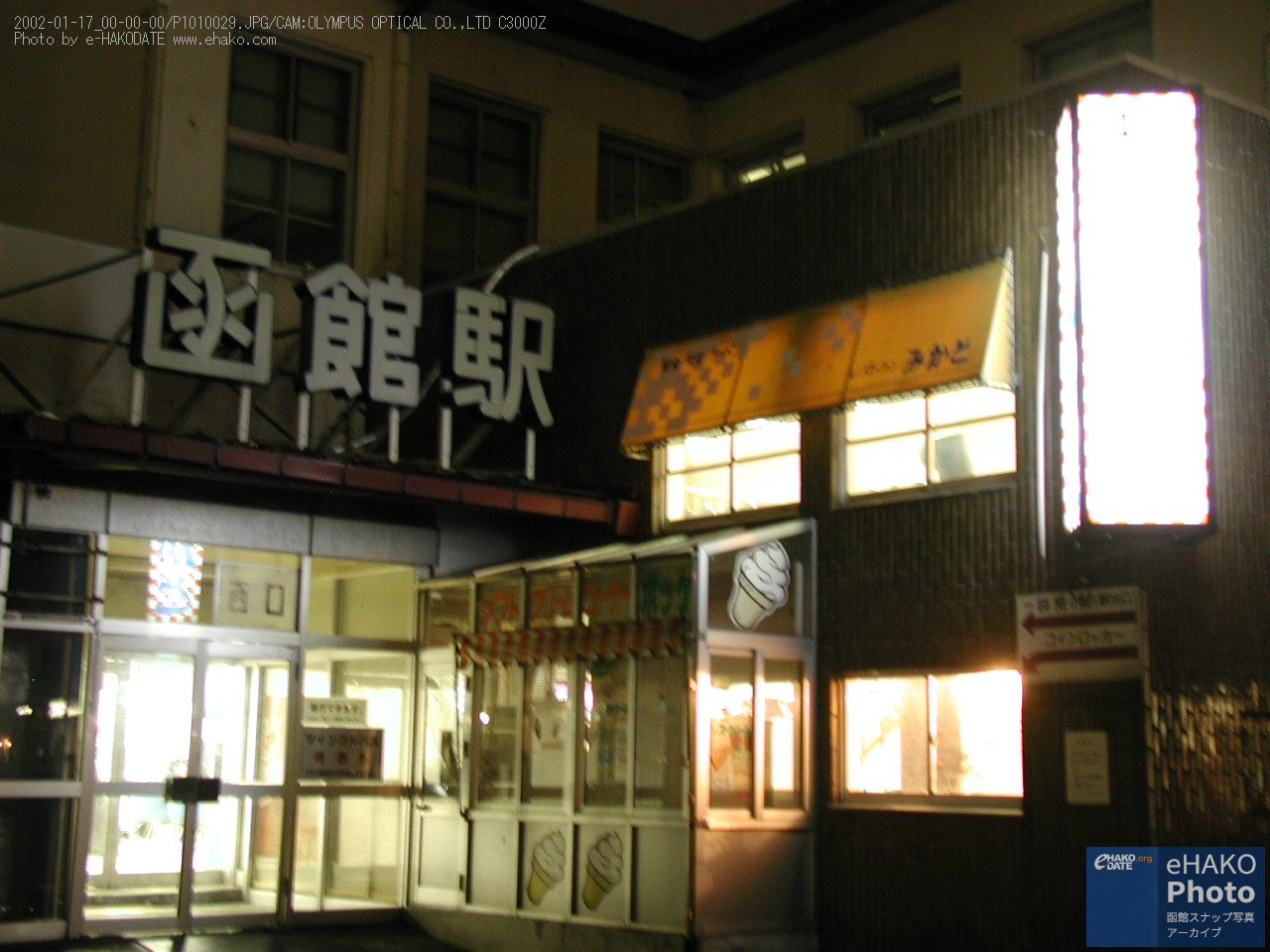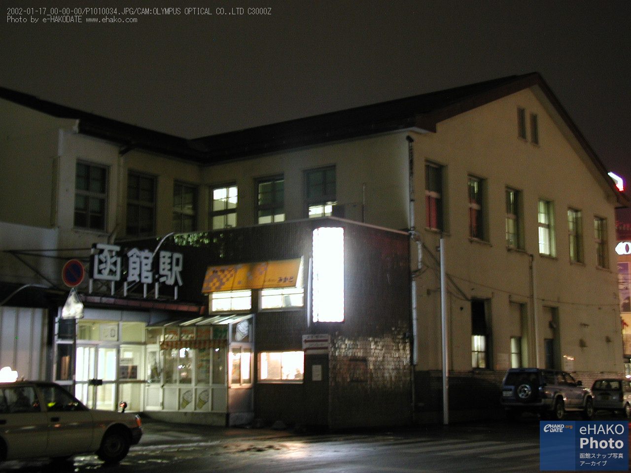 JR函館駅旧駅舎西口 2002年1月17日撮影。 駅の奥にはWAKOが見えるアングル。 そして、新駅舎への工事が進みつつある様が見える西口。 ちょっとピンぼけだったり、手ブレしているのですが、ちょっと懐かしい写真ということでそれもご愛嬌ということで…。 「レストラン みかど」が懐かしい。 そういえば、なんだかあんまり雪が無いですねー。 FacebookXBlueskyHatenaCopy