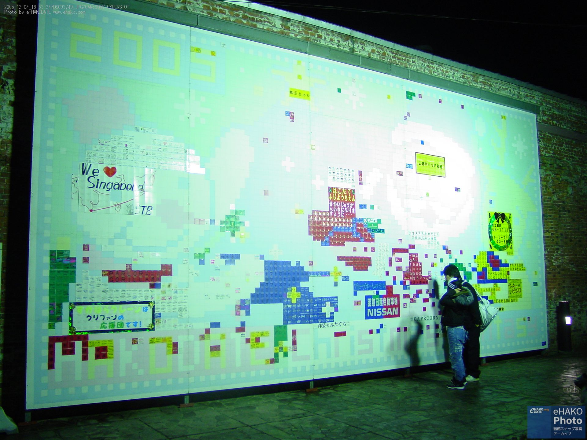 はこだてクリスマスファンタジー会場周辺 2005年12月 2005年12月4日18:53頃撮影 はこだてクリスマスファンタジー会場周辺のスナップ写真です。 FacebookXBlueskyHatenaCopy