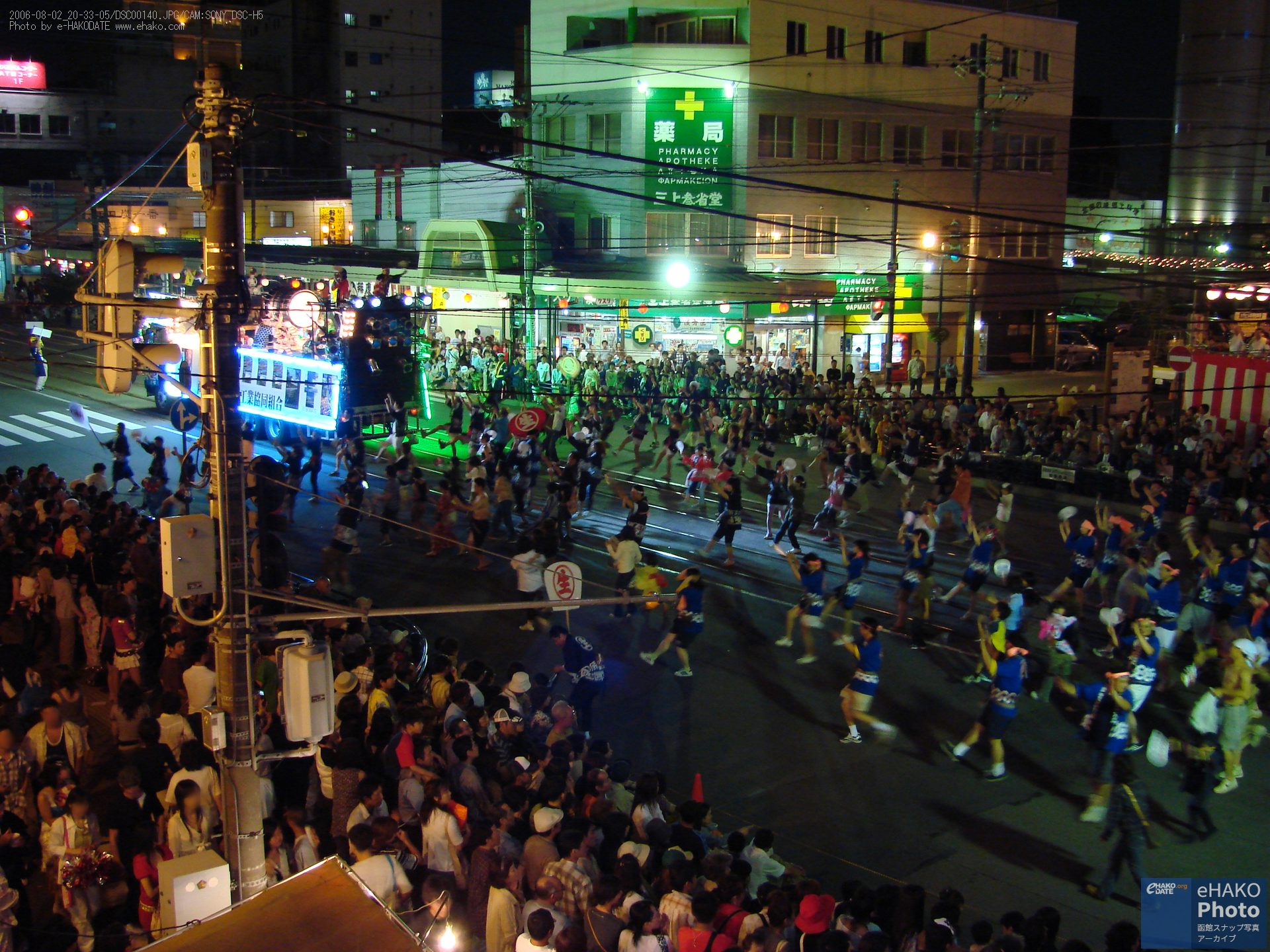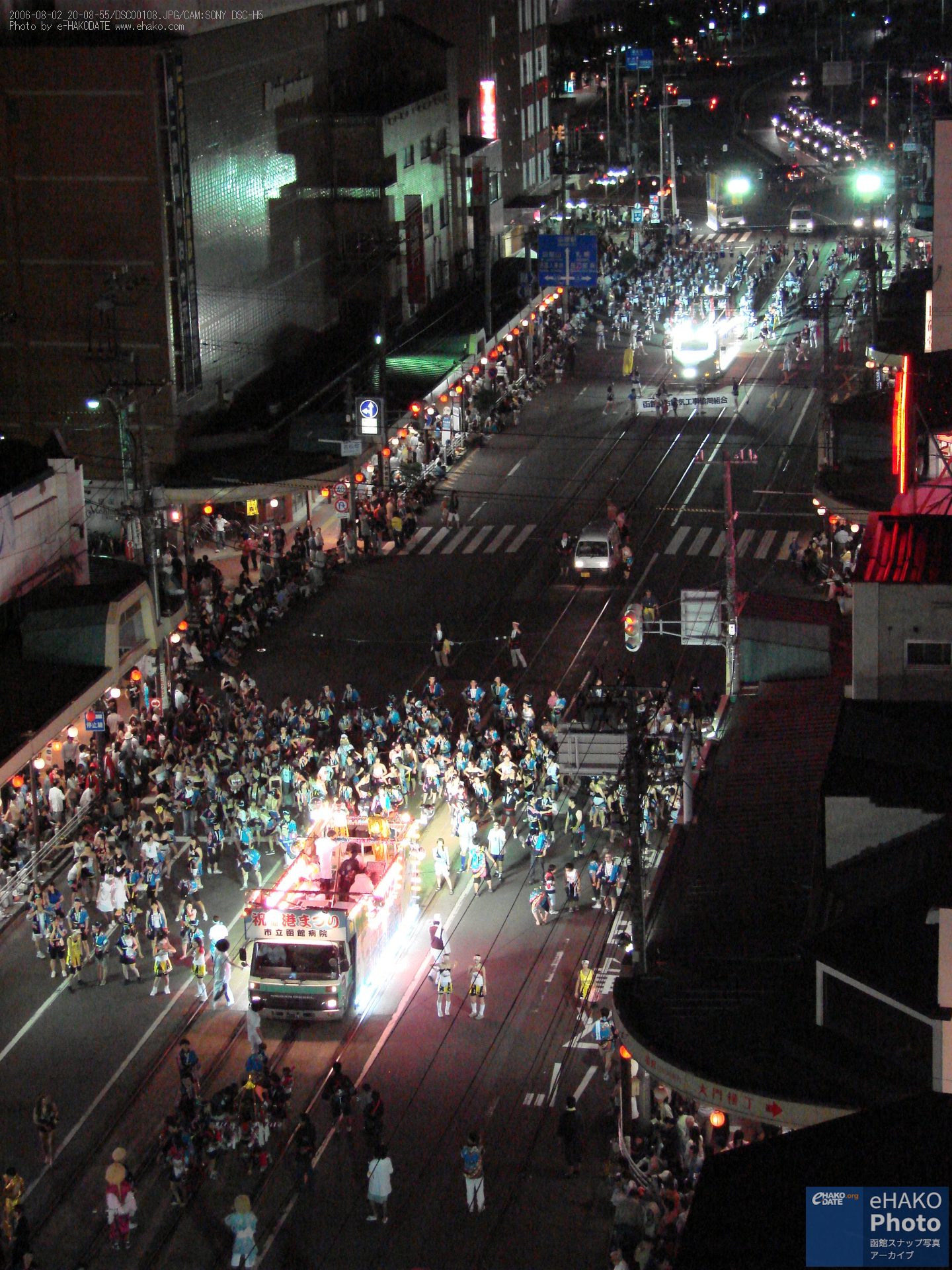 函館港まつり わっしょいはこだて・十字街・松風コースその1 2006年8月 2006年8月2日 19:00頃から撮影 2006年の「函館港まつり わっしょいはこだて・十字街・松風コース」その1です。 グリーンプラザ周辺の屋台の賑わいやパレートを上から撮影した写真などなど。その2はイカ踊り多めです。 FacebookXBlueskyHatenaCopy