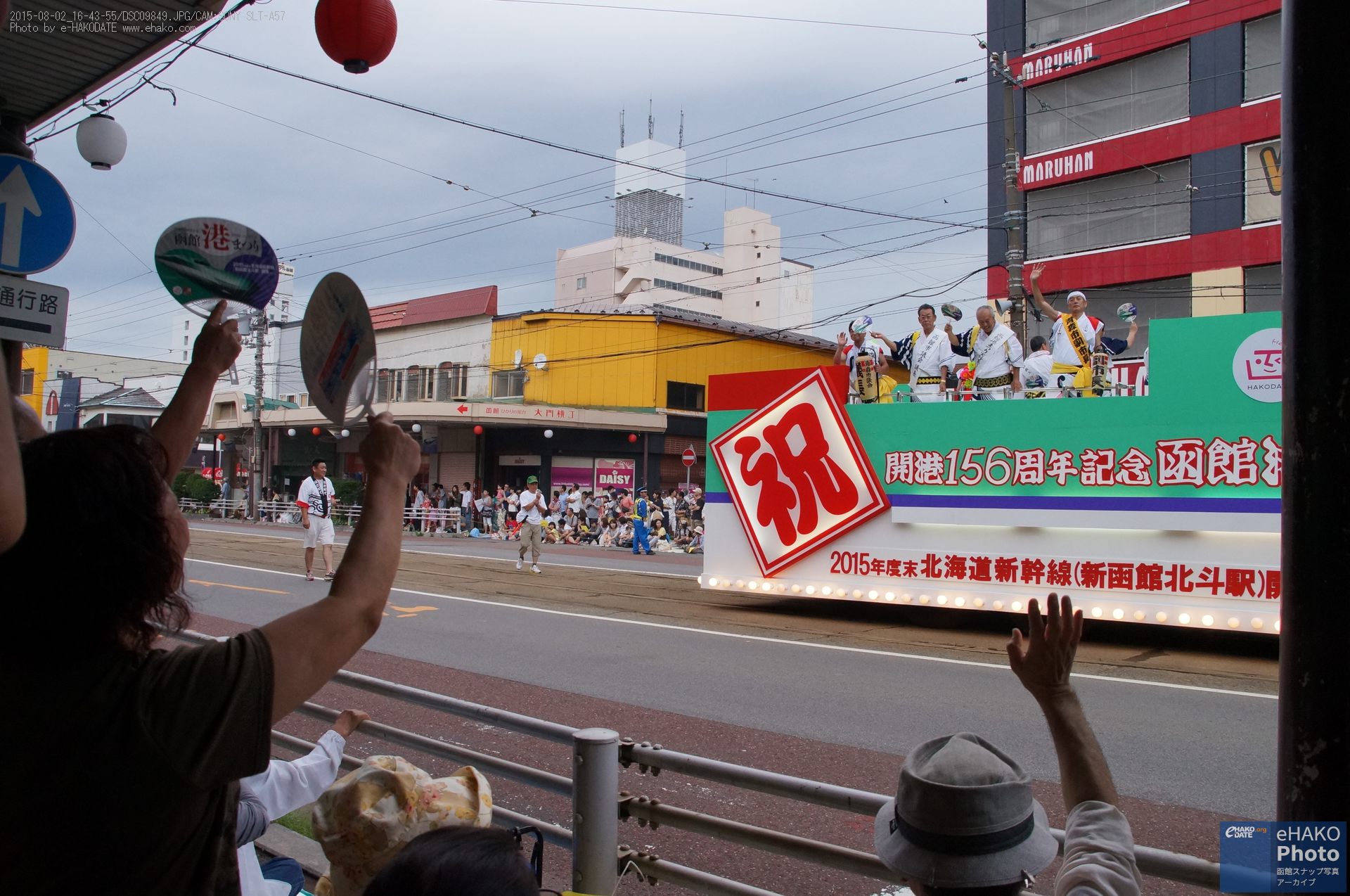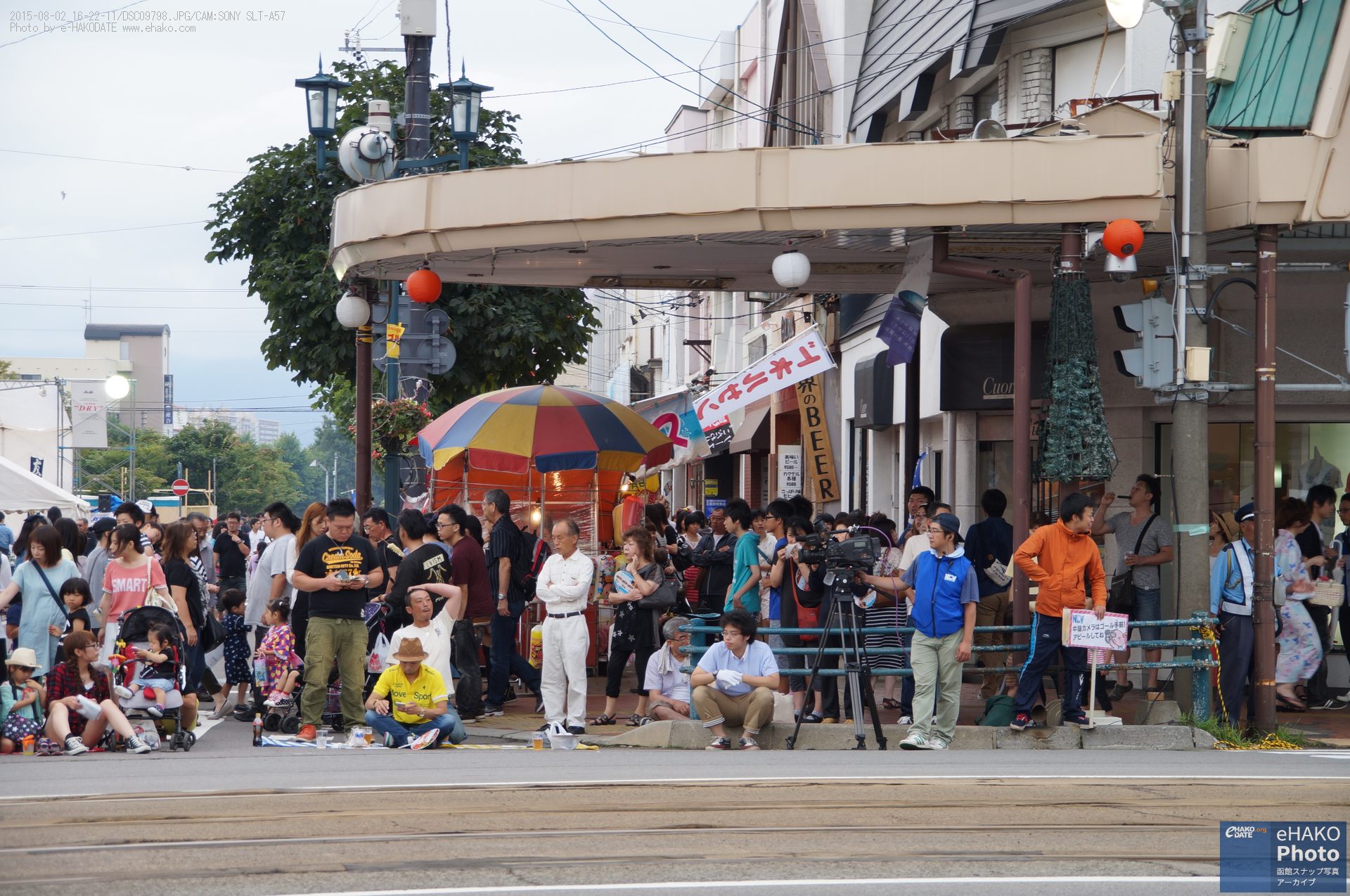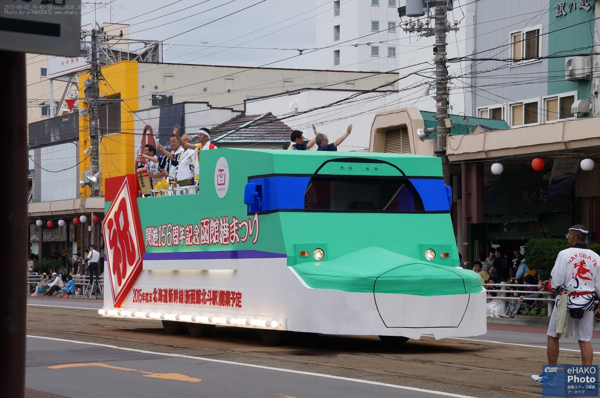 2015年函館港まつり2日目その4 2015年8月2日撮影。 アーケードの下に沢山の人・人・人。 2016年開業の北海道新幹線を盛り上げようと、新幹線カラーのパレードが多かったですね。 FacebookXBlueskyHatenaCopy