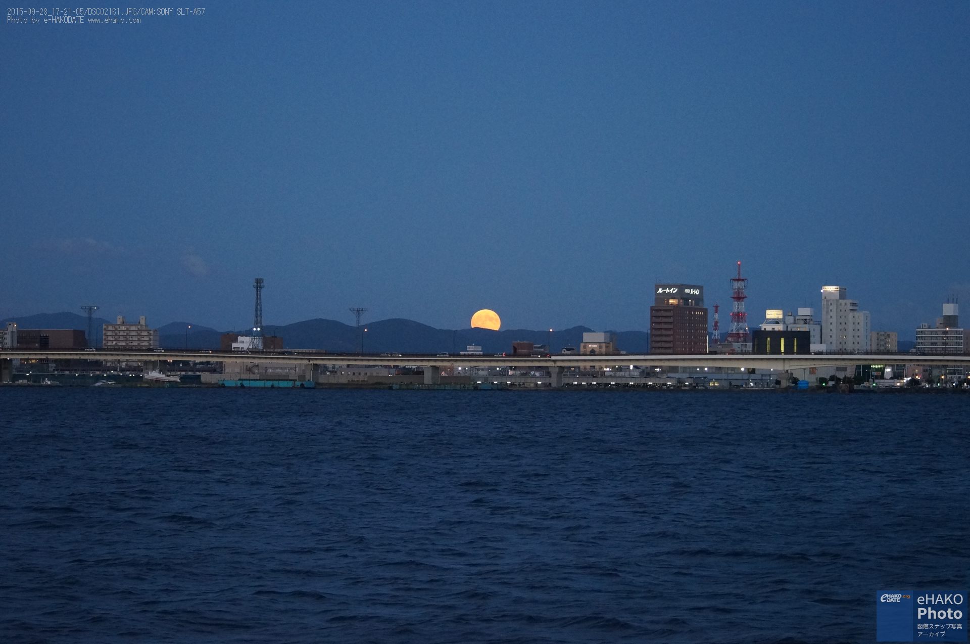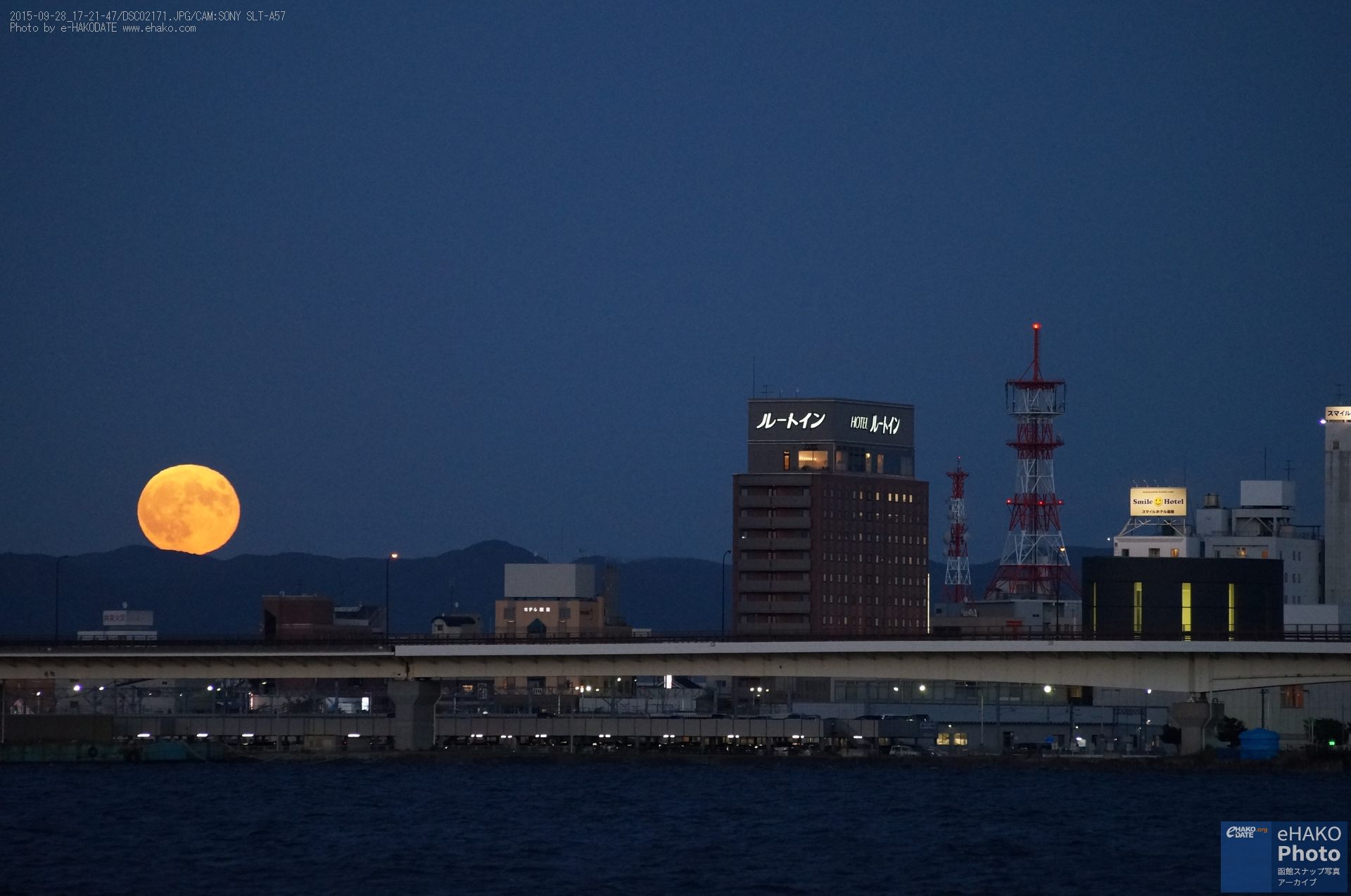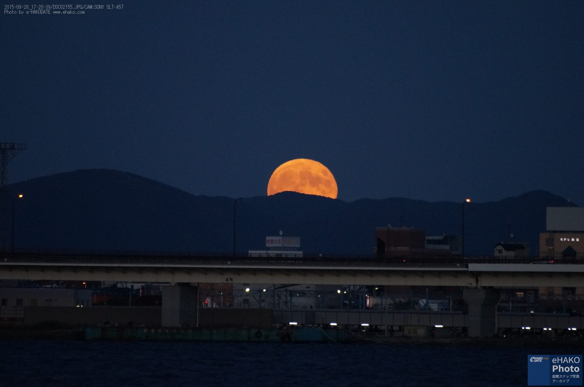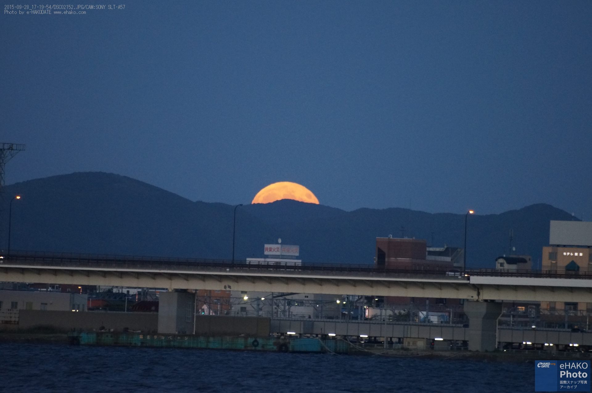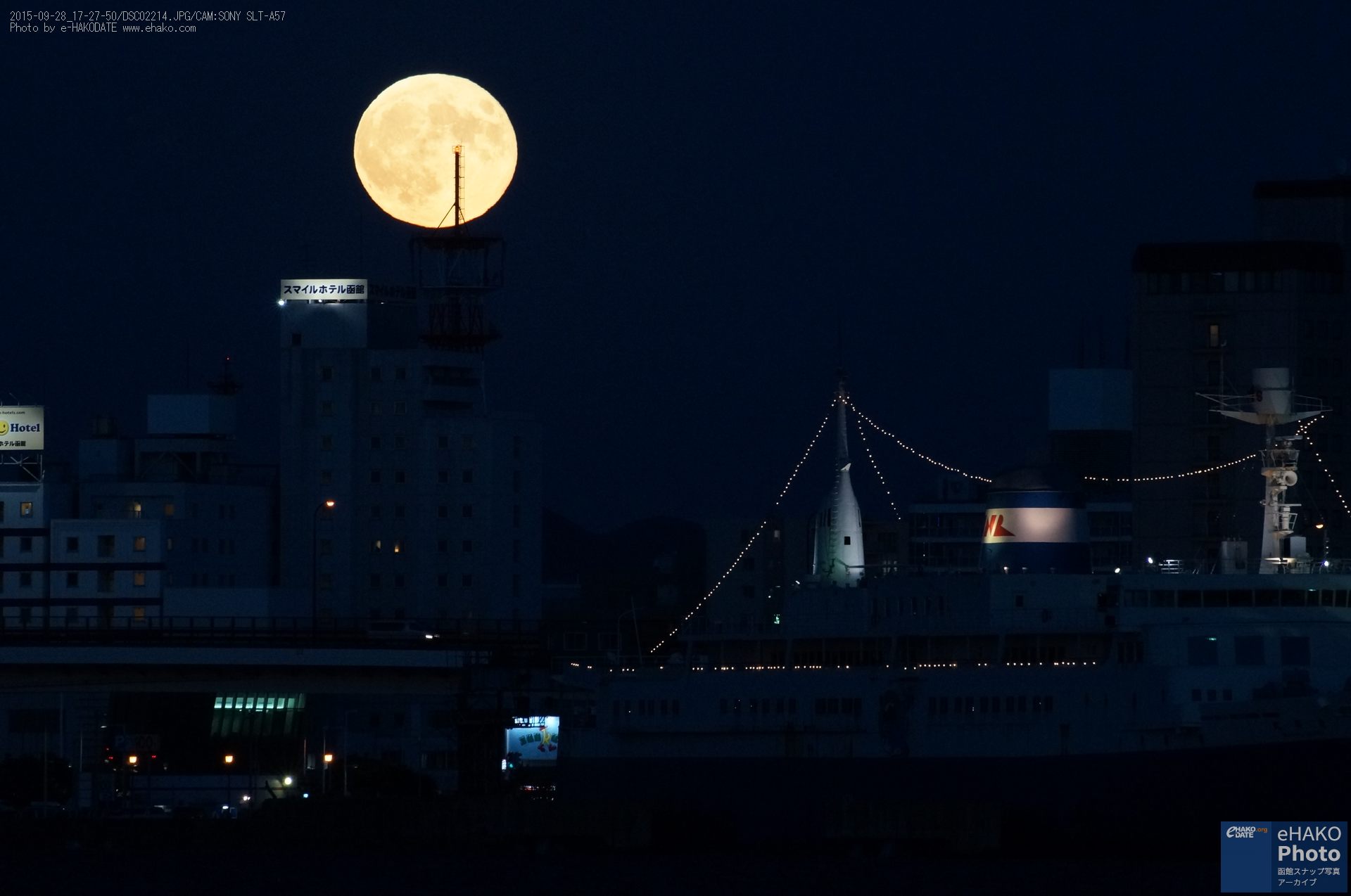 少し場所を変えて摩周丸とスーパームーン。映画や漫画の中に出てくるような印象的なお月様でした。
