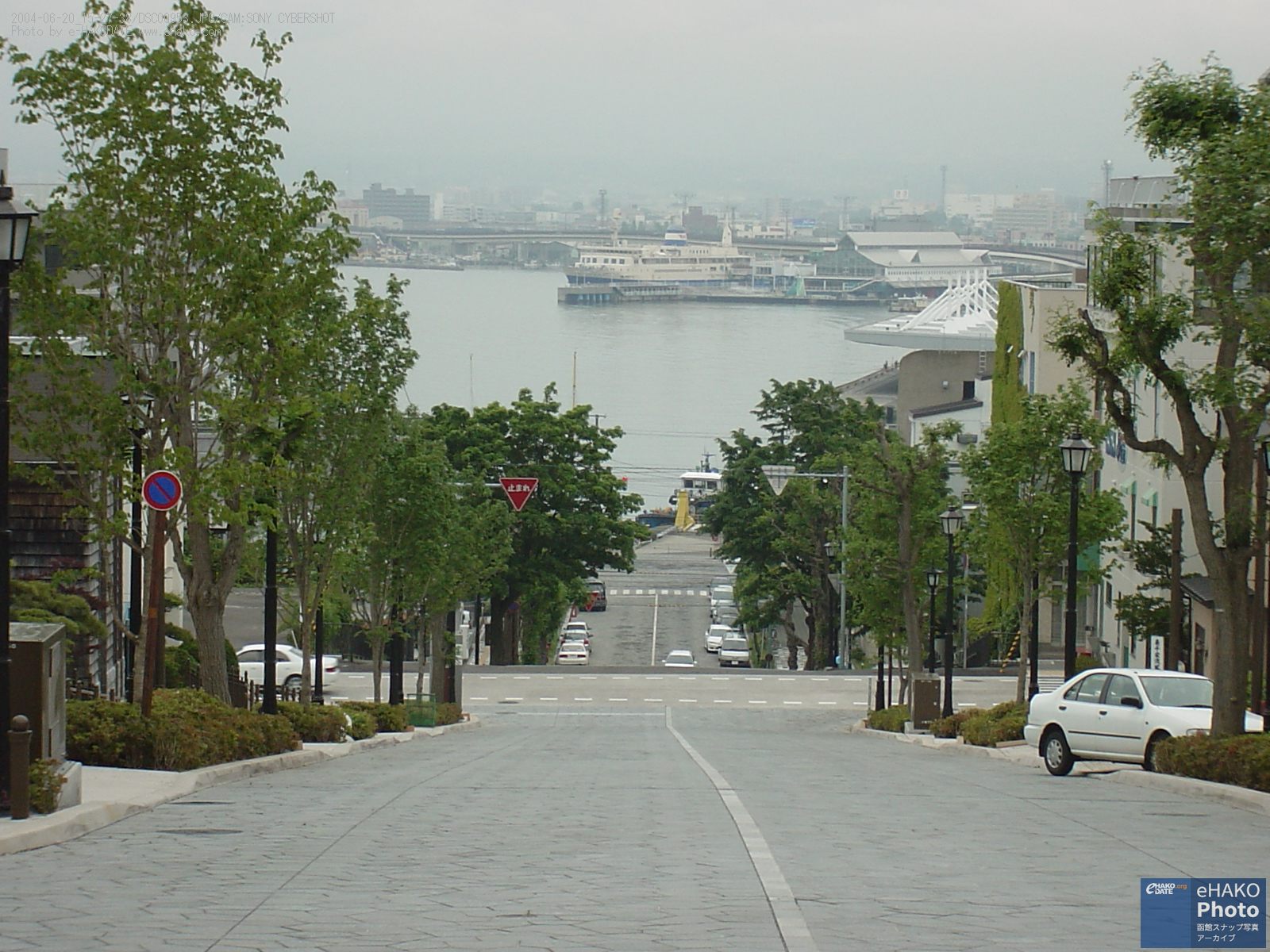 曇り空なのが残念。元町の坂の中で最も有名かも?知れない八幡坂。坂の上からまっすぐ見下ろすと正面に旧青函連絡線というこの構図はただ関心するばかりです。
