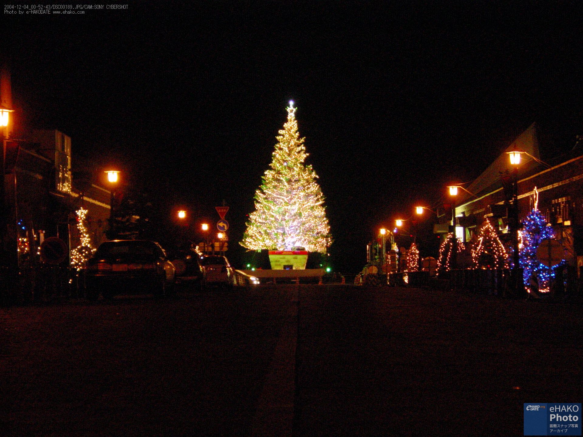 クリスマスファンタジー会場のツリーを人が少なくなった深夜に撮影。