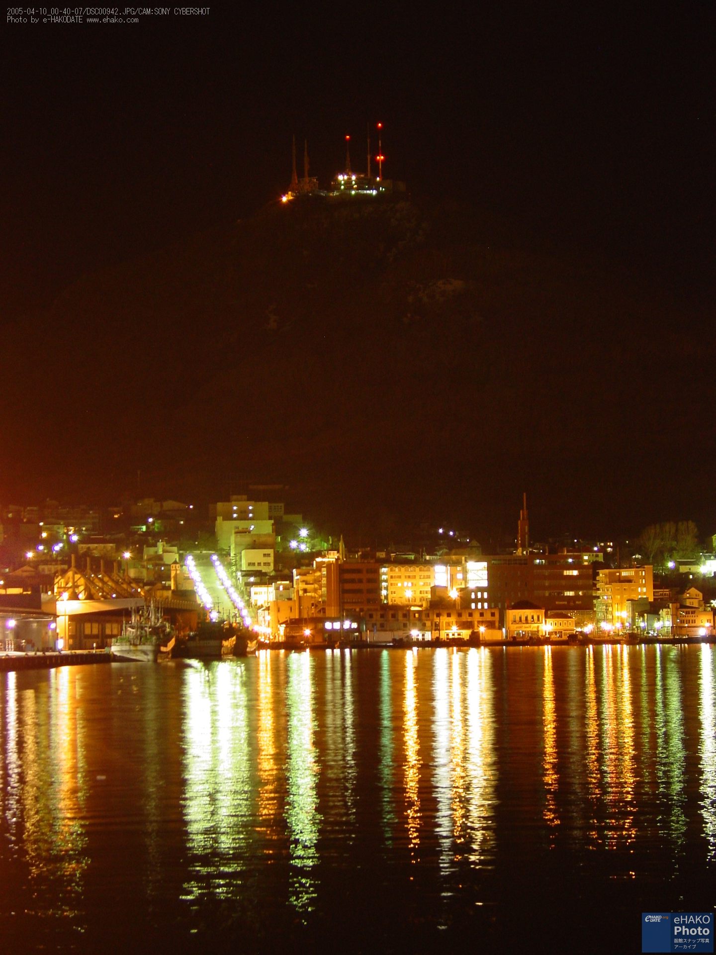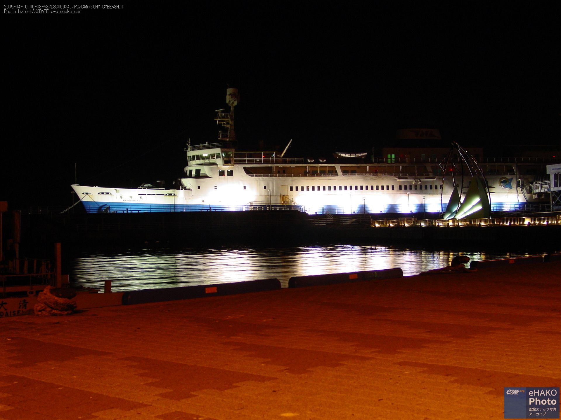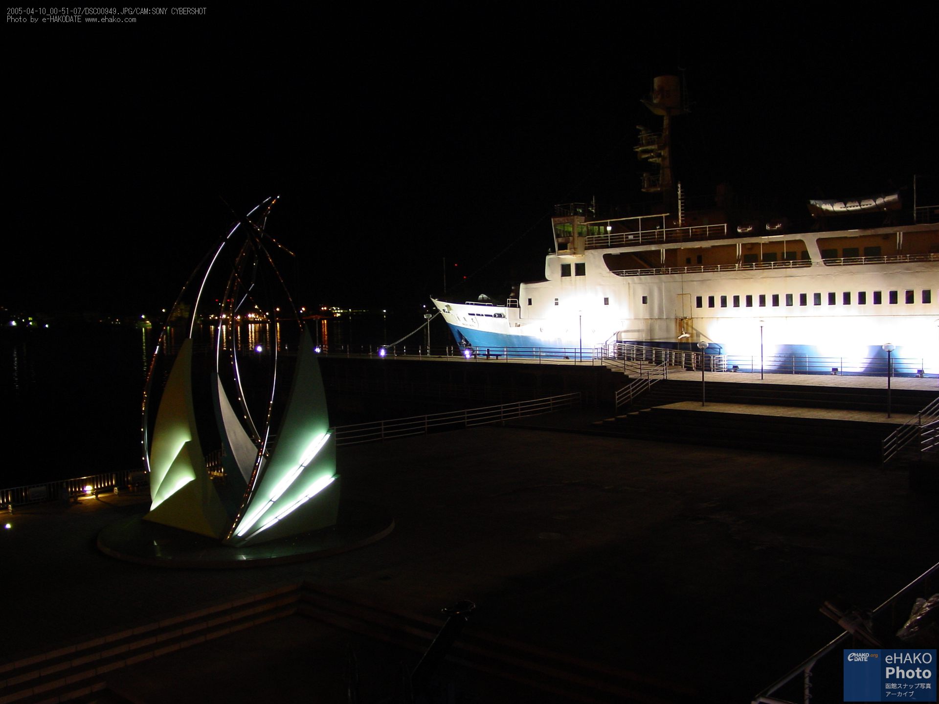 旧青函連絡船のメモリアルシップ摩周丸。最後の1枚は同じ場所から撮った函館山と西部地区の街並み。時間帯が夜中ということもあって灯かりは少なめに見えます。