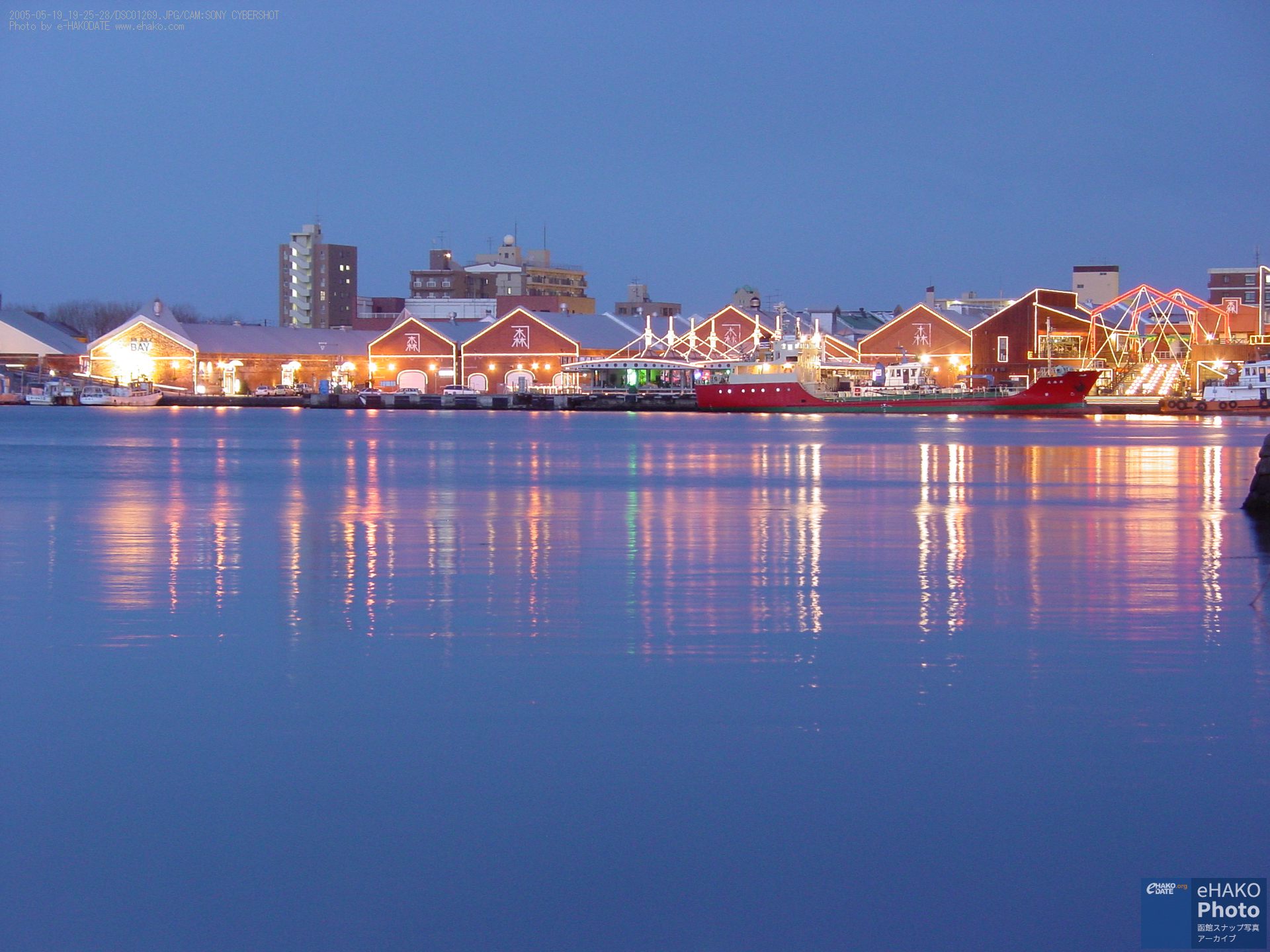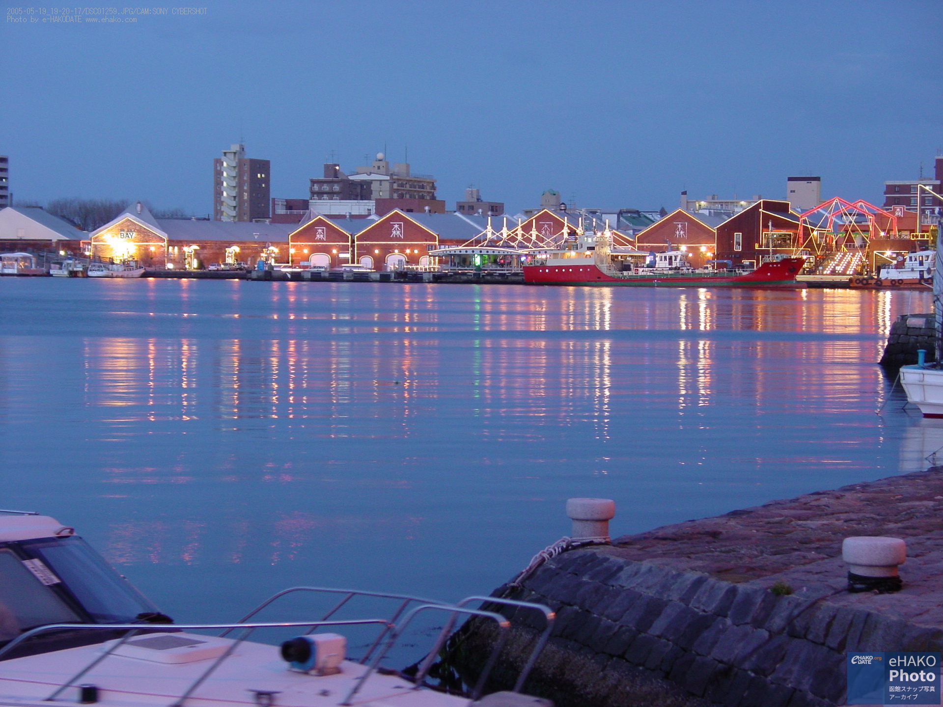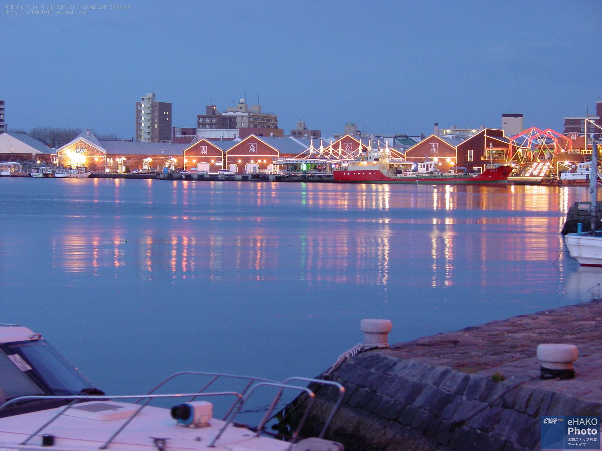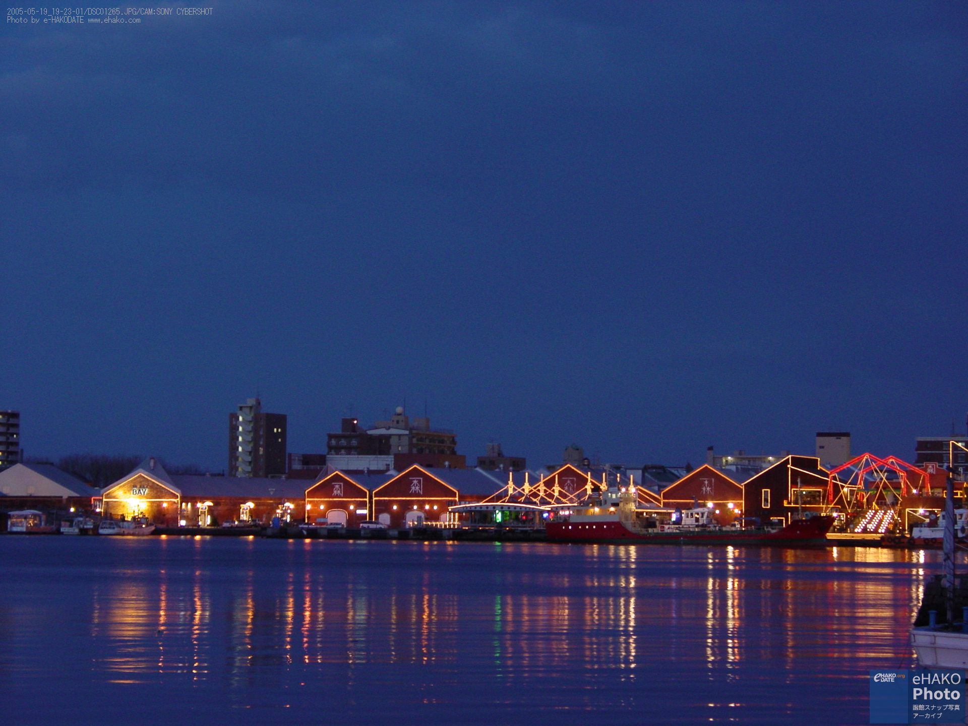 日没後の赤レンガ倉庫群 2005年5月19日 19:19撮影。 日没後、光が目立ち始めた頃の金森赤レンガ倉庫群を、「新島襄海外渡航の地碑」の石碑のあたりから。 このうち一番ちゃんと撮れていたものが壁紙ダウンロードになっています。 FacebookXBlueskyHatenaCopy